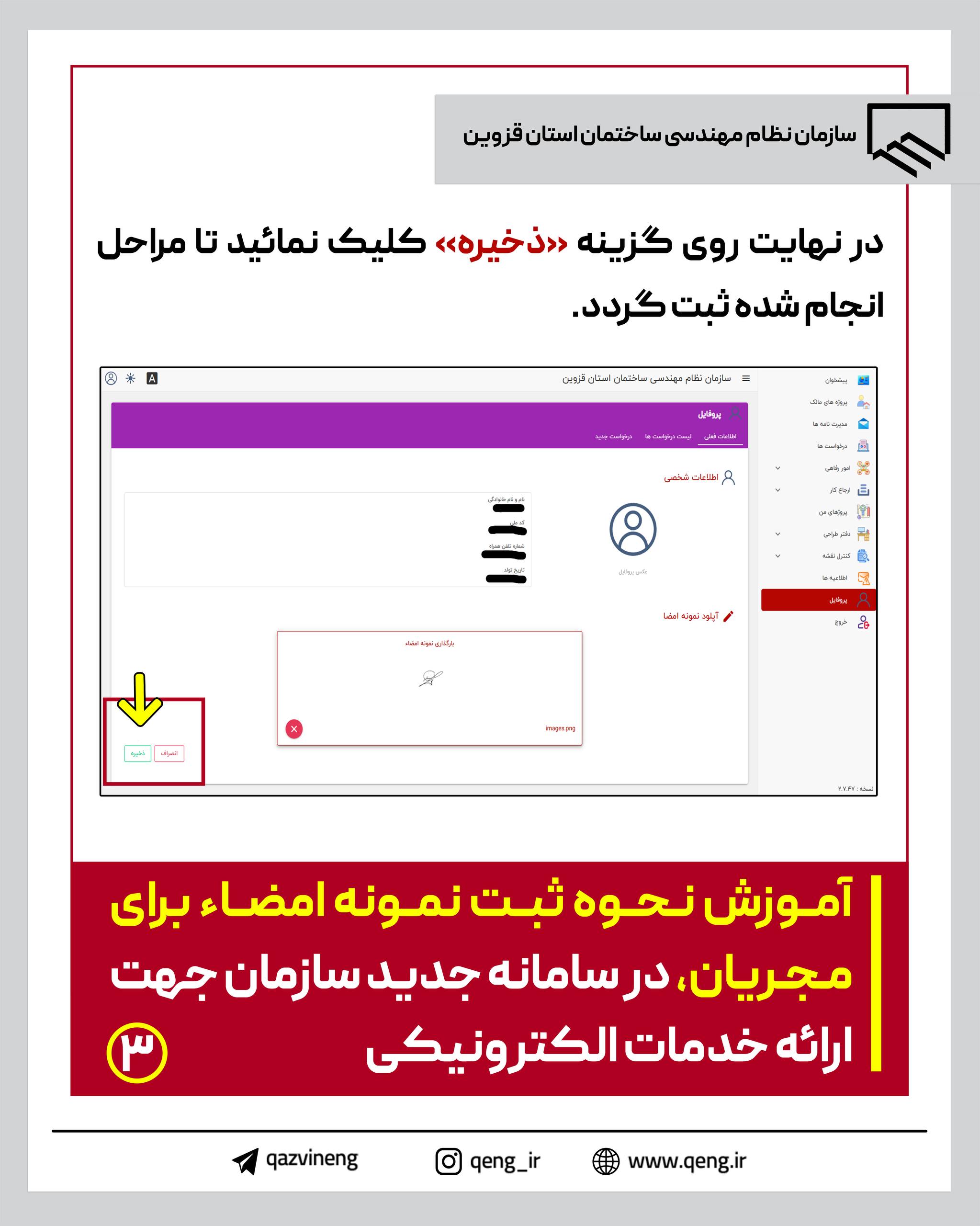سازمان نظام مهندسی ساختمان قزوین از همه مجریان و سرپرستان کارگاه درخواست دارد با مراجعه به سامانه مذکور و بارگذاری امضاهای خود، زمینه بهرهبرداری سریعتر از این خدمت نوین را فراهم کنند.