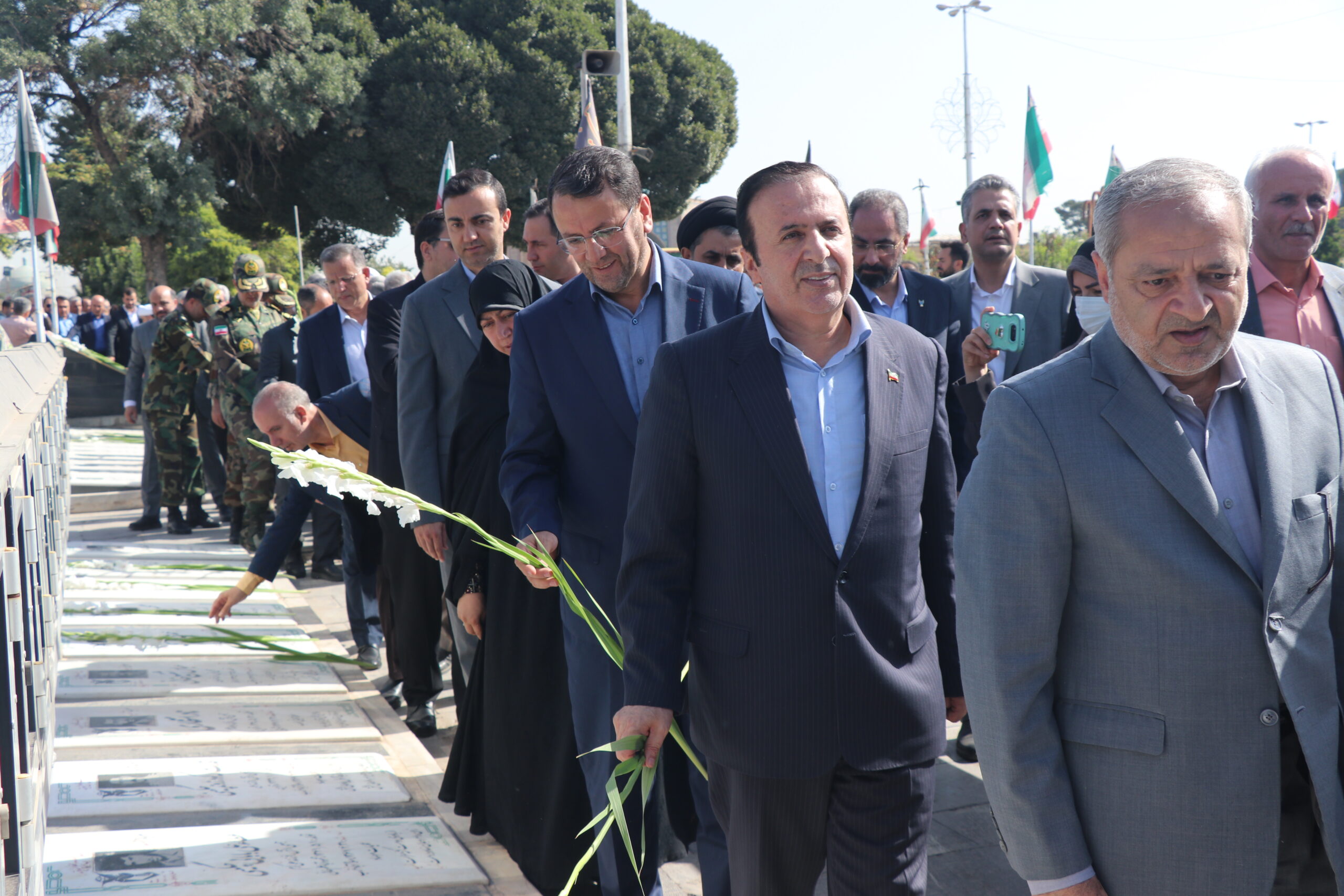 🔺در این مراسم، حاضران با نثار گل و قرائت فاتحه، یاد و خاطره شهیدان انقلاب اسلامی و دفاع مقدس را گرامی داشته و با آرمانهای انقلاب اسلامی و شهیدان والامقام تجدید پیمان کردند.