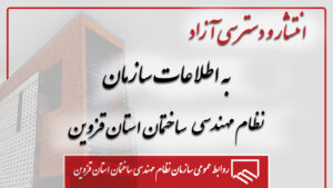 ۱- اطلاعات مورد نیاز مردم و اعضا بر اساس قانون انتشار و دسترسی آزاد به اطلاعات، توسط سازمان نظام مهندسی ساختمان استان قزوین منتشر گردید.